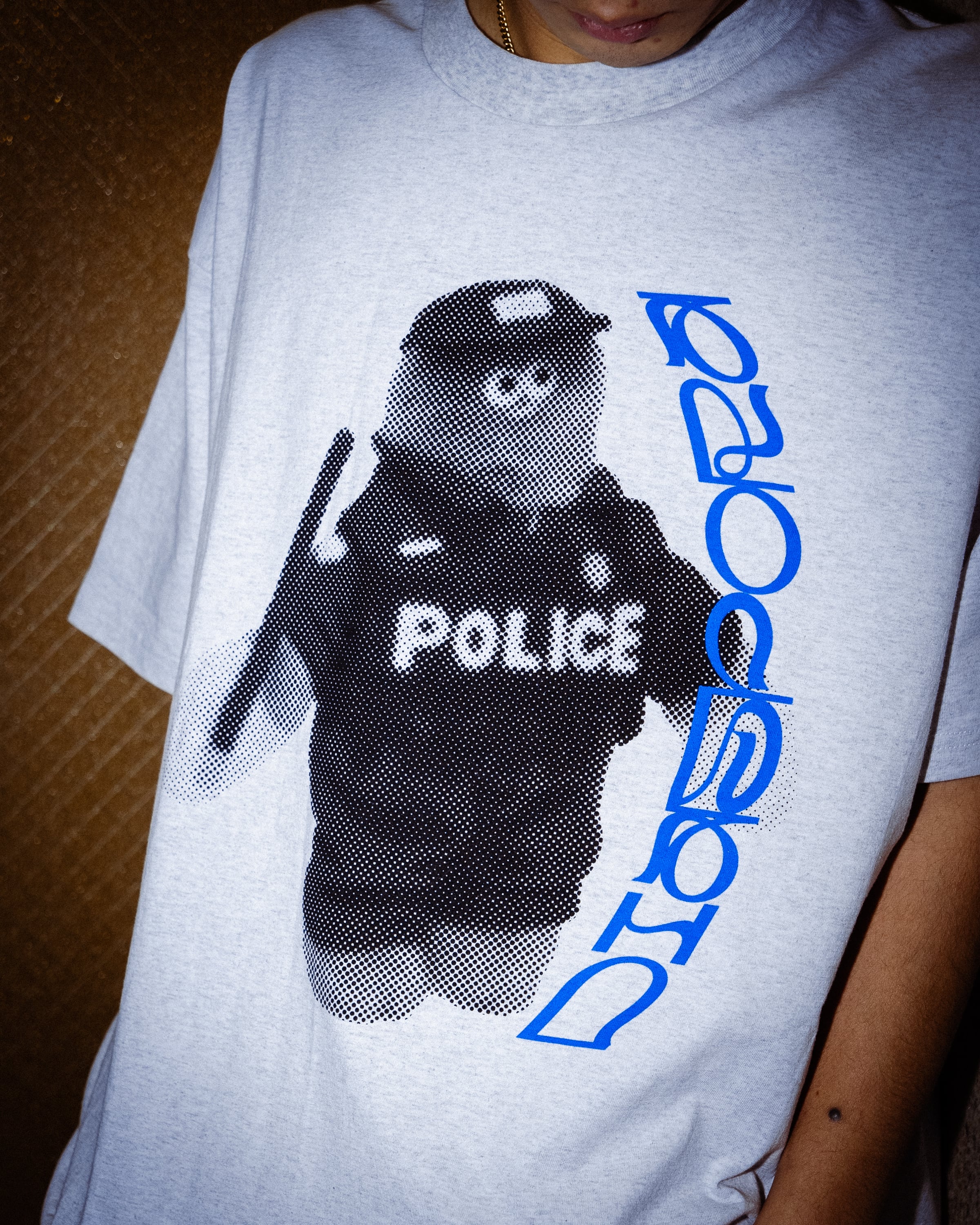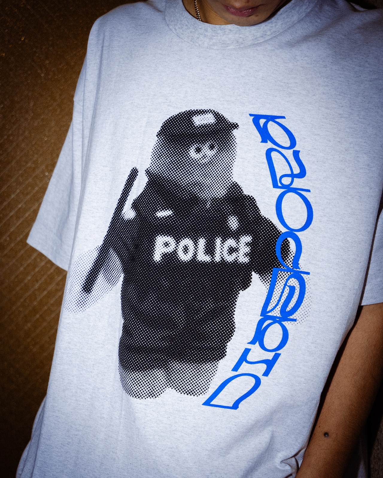 The TOMODACHI!× Diaspora skateboards コラボ Tシャツ "MAD POLICE" Sサイズ/Mサイズ